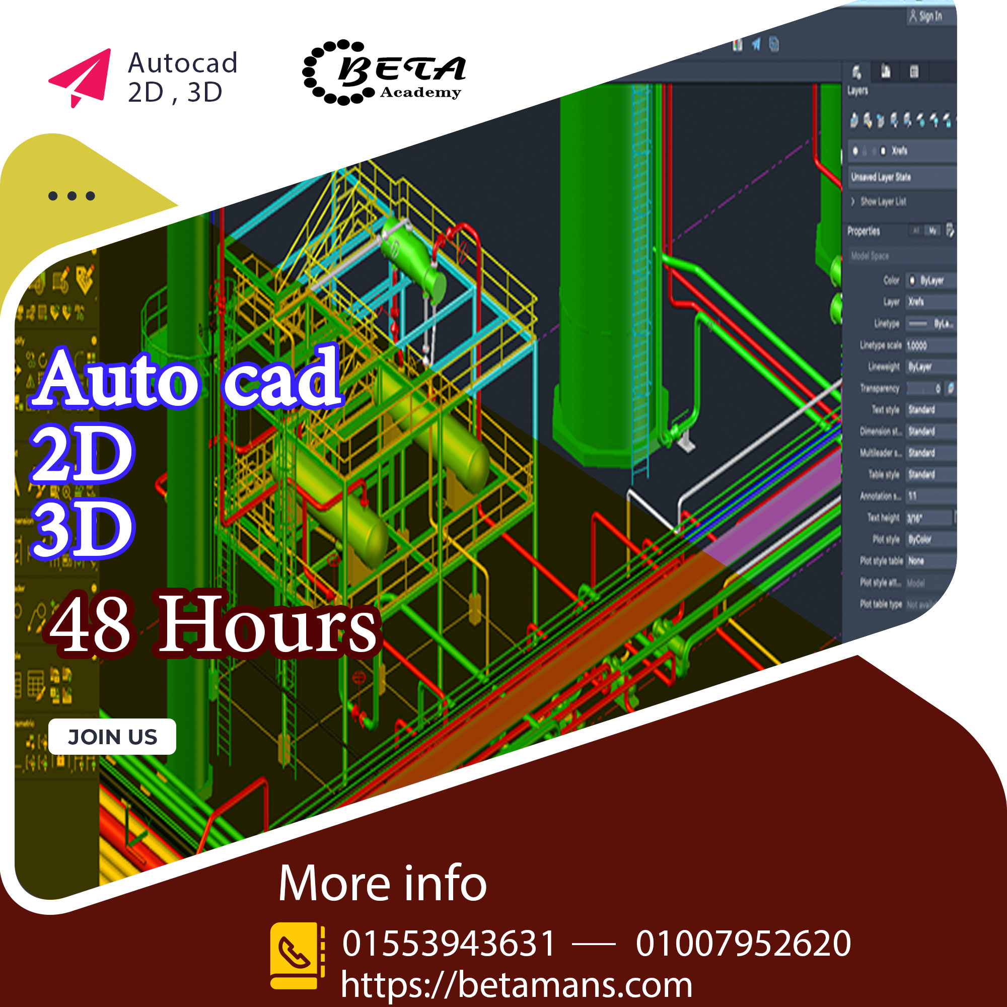كورس الاوتوكاد 2d +3d فى 48 ساعة شرح الادوات 2d , 3d عمل امثلة مع…